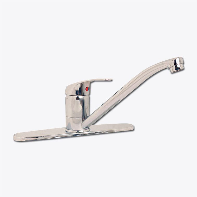 CARACTERÍSTICAS: ° Mezcladora monomando P/fregadero al piso. ° Con chapetón. ° Acabado: Cromo. ° Cartucho cerámico.