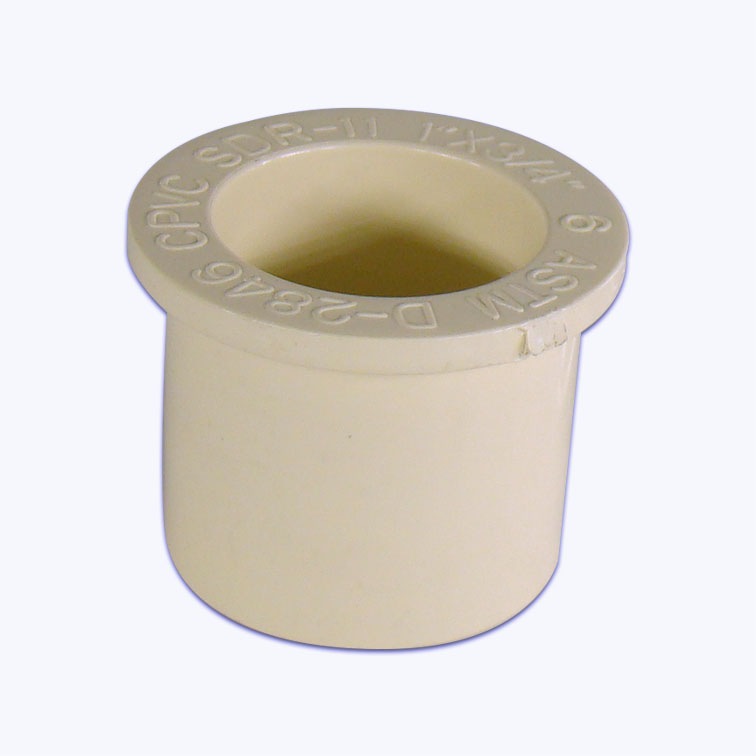 CARACTERÍSTICAS: ° Reducción bushing CPVC. °1 X 3/4. ° Material Policloruro de vinilo postclorado CPVC. ° Presión de trabajo 82 °C: 5.61 kgf/cm² (80 psi).
