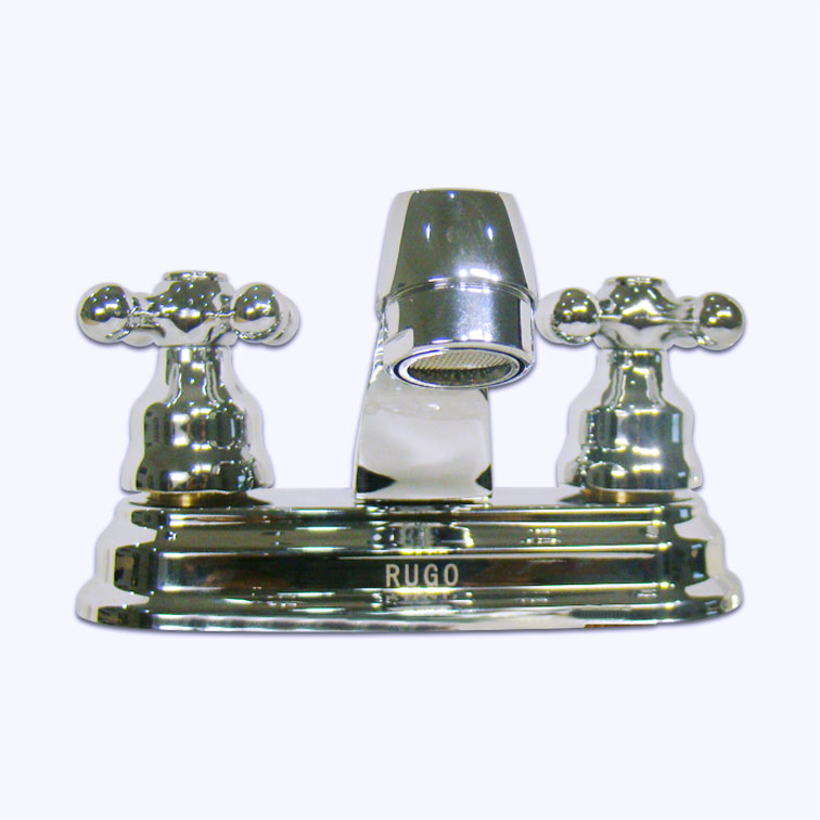 CARACTERÍSTICAS: ° Mezcladora p/lavabo. ° C/Chapetón. ° Medida: 4. ° Cartucho cerámico; cierre 90°. ° Acabado: Cromo. ° Maneral: Cruceta.