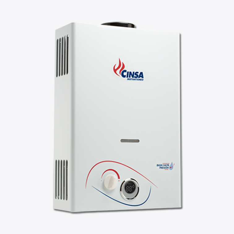 ¡En Ceramat te acompañamos a construir el espacio de tus sueños! Lideres en el mercado. 40 años de experiencia nos respaldan. USOS: Calentador de Depósito. VENTAJA: ° Sistema de bloqueo que evita sobrecalentamiento. ° Solo enciende cuando abres la llave. ° Funciona con alta o baja presión. ° Materiales resistentes y durables. ° Fácil instalación. CARACTERÍSTICAS: ° Servicios: 1. ° Capacidad a Nivel CDMX: 5Lt. ° Capacidad a Nivel del Mar: 6,7Lt ° Para Gas: L.P. ° Tipo de control para temperatura: Perilla y display digital. ° Tipo de encendido: Automático por demanda de agua. ° Sin piloto de paso intant. ° -Voltaje de alimentación (VCD): Utiliza 2 pilas tipo “D” (1,5 V). MODELO: CIN-06. PESO: 4.9 kg. LARGO:48 cm. ANCHO:30 cm. COLOR: Blanco. MARCA: CALOREX. GARANTÍA: 5 AÑOS DE GARANTÍA TOTAL. 800 552 46 72.