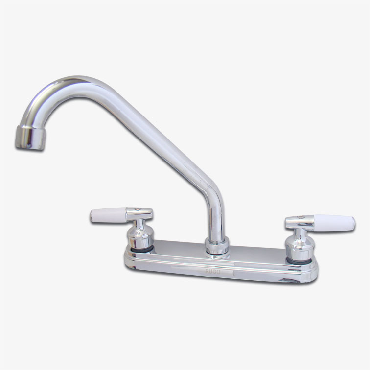 Acabado: Cromo, Maneral: Piruli blanco, ecológico, Nariz pubo de latón, Con aereador, Cubierta metalica, Cuerpos laterales de bronce fundido con tubo de cobre, Alimentación de 1/2 NPS, Manerales piruli blanco. PRODUCTO ECOLÓGICO.