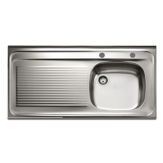CARACTERÍSTICAS: - Acero inoxidable - Acabado: Mate - Instalación: Sobreponer - Ancho de la base: > 60 cm - Desagüe: 3 ½’’ - 3 Agujeros para grifería - Calibre: 24 - Versiones: Izquierdo y derecho - Cubeta (Largo/Ancho/Profundo): 370 x 340 x 145 mm - Cantos: 20 mm