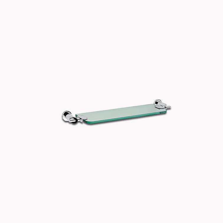 CARACTERÍSTICAS: °Repisa de cristal de 60cm. °Acabado Cromo. °Materiales: Latón, Repisa de Vidrio de 10 mm de Espesor. °Accesorio de semiempotrar. °Incluye paquete de sujeción. °Incluye llave allen 3/32.
